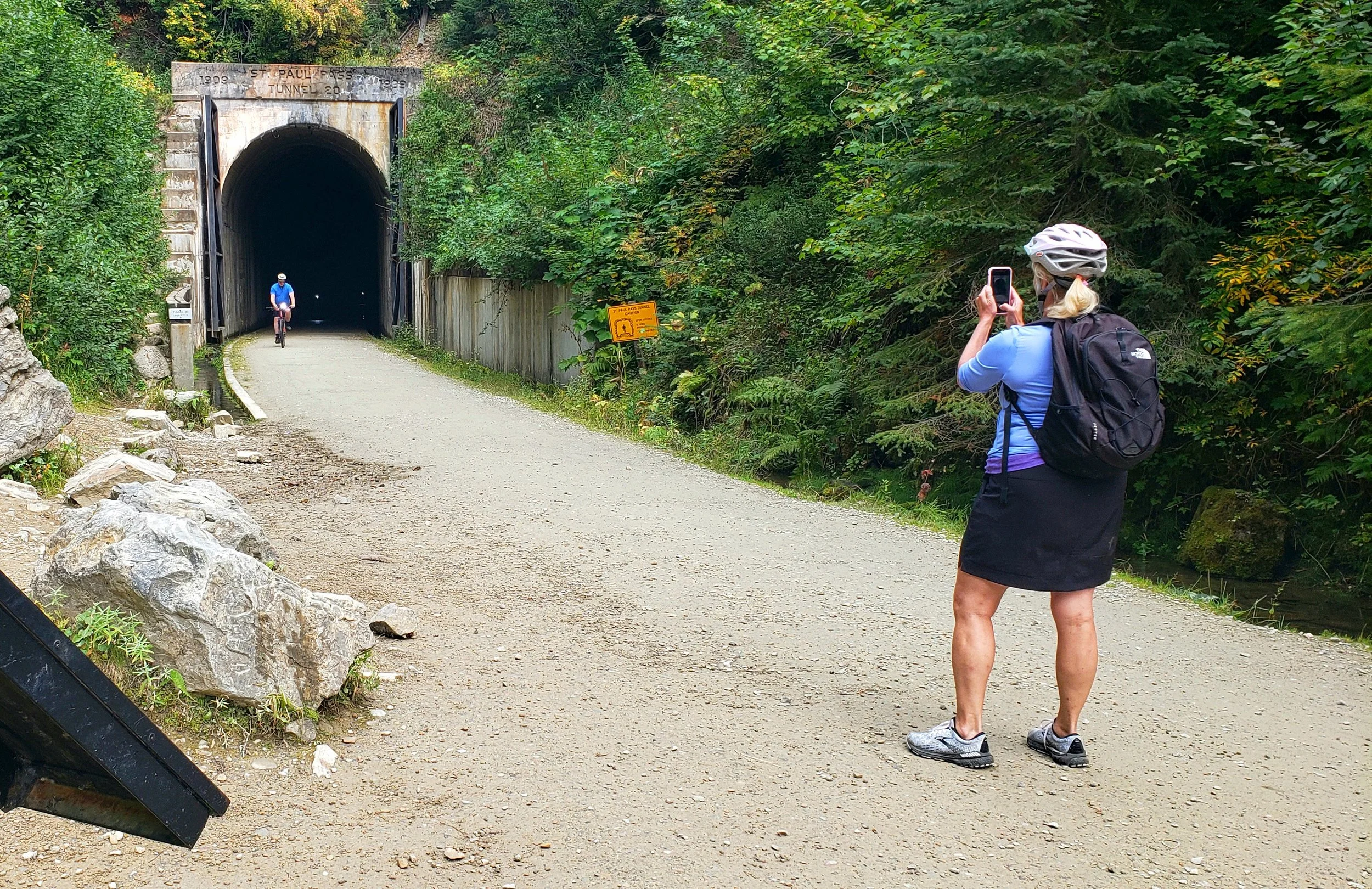 We’ll drive to the trailhead and begin a gradual downhill ride through forested corridors, crossing high bridges and passing through historic rail tunnels carved deep into the mountains.